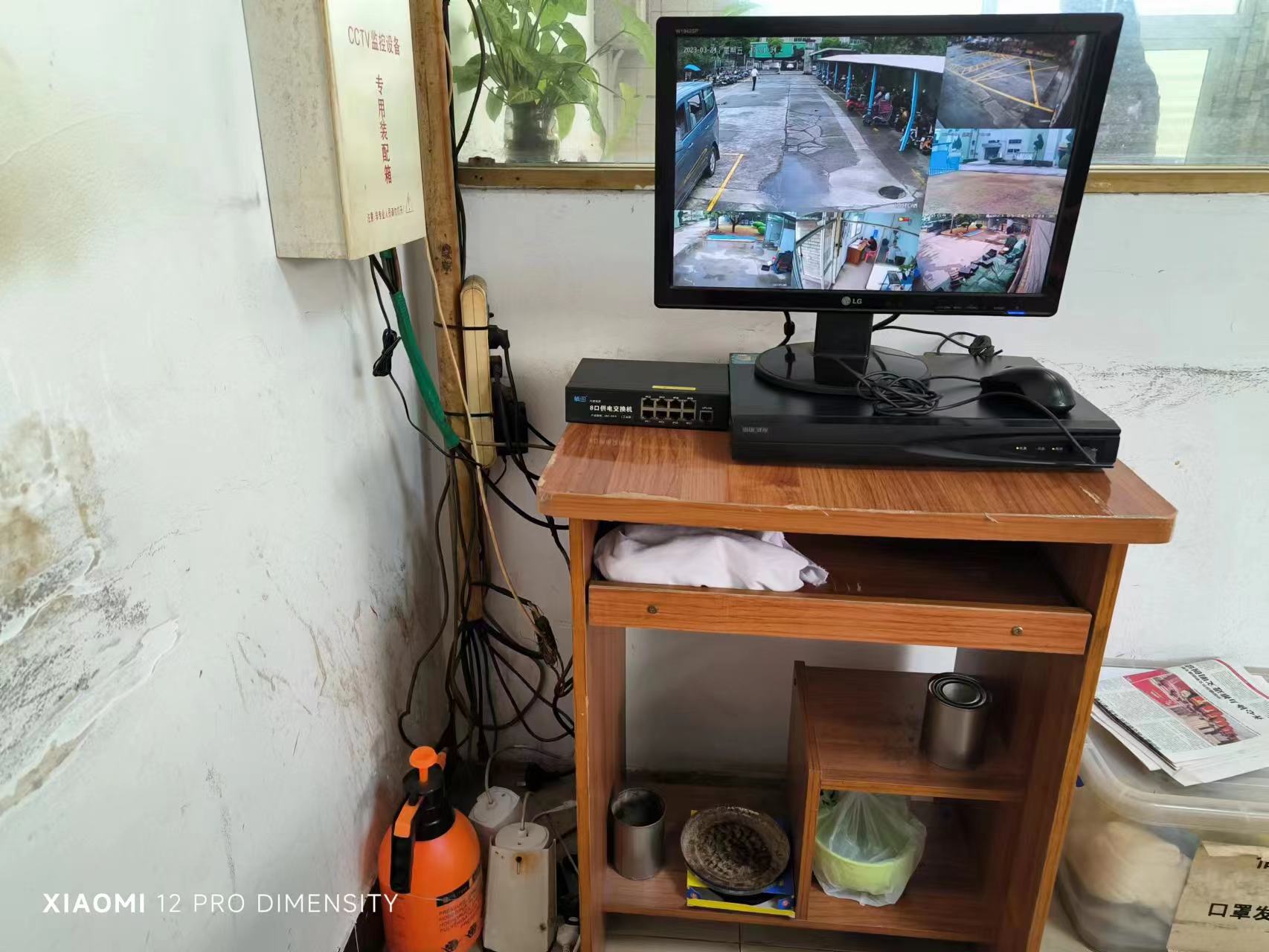 這是一套早期的視頻監(jiān)控系統(tǒng),錄像機是用???6路2T硬盤錄像機1臺,交換機采用非標12v幀田8口供電交換機2臺,攝像機采用大望4線12V 100W像素攝像機6個,4個沒有畫面。