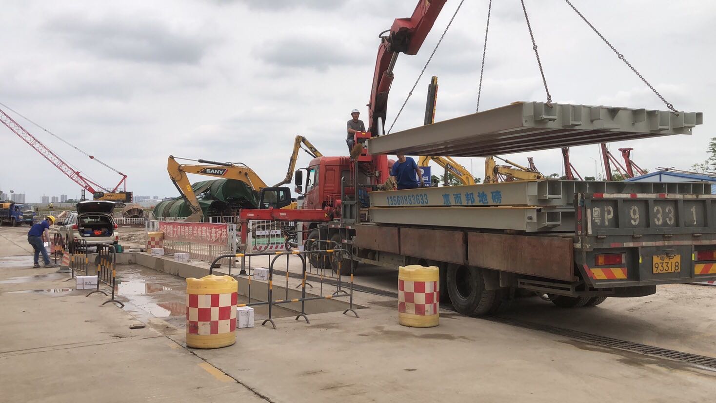 首先我們要找好起吊地磅用的吊車、工具等,吊車根據(jù)地磅噸位的大小來選擇。還有就是起吊人員一定要專業(yè),地磅上面都有相應(yīng)的吊孔和吊環(huán)。一般要有四根繩子穿孔起吊。