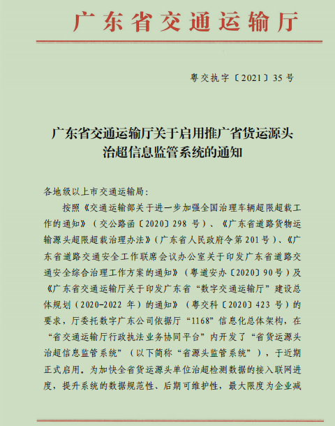 近年來,公路貨運車輛超載超限運輸已成為危及全國道路交通安全的一個嚴重問題。超載超限運輸使得公路、橋梁不堪重負,大大降低道路橋梁的使用壽命使公路維修費用劇增;同時,超載車輛安全系數(shù)大幅度降低,不斷引發(fā)交通事故;另外,超載超限車還容易造通擁堵,引發(fā)環(huán)境污染,已經(jīng)成為影響社會經(jīng)濟秩序穩(wěn)定和構(gòu)建和諧社會的突出問題。為此交通部頒布了《超限運輸車輛行駛公路管理規(guī)定》和八部聯(lián)合發(fā)布的《關(guān)于在全國開展車輛超限超載治理工作的實施方案》,以及廣東省交通廳頒布《廣東省道路貨物運輸源頭超限載治理辦法》規(guī)定運用經(jīng)濟與行政相結(jié)合的手段對通過的超限車輛進行必要的執(zhí)法處理,以有效的保證橋梁和路面的使用壽命。