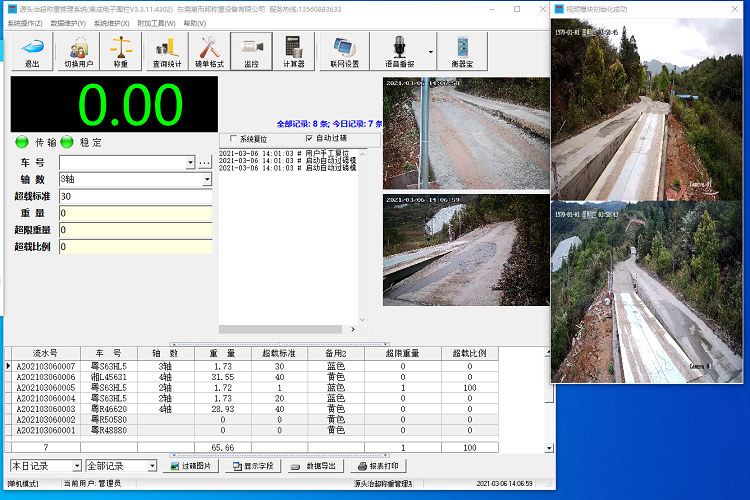 系統(tǒng)主要由動靜態(tài)稱體、欄桿機、稱重配件、車牌識別攝像機、顯示屏、稱重工控機、后端管理軟件等組成。該系統(tǒng)可自動引導超限車輛進入稱重區(qū)域檢測,系統(tǒng)可自動識別車牌號碼并從系統(tǒng)中提取車輛信息判斷超限率等信息。