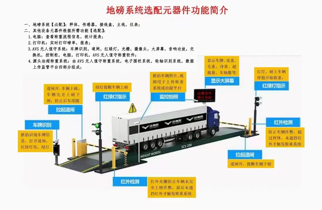 8、系統(tǒng)擁有完善的提示功能(全程語(yǔ)音喇叭、LED大屏顯示、交通信號(hào)燈、道閘欄桿提示),無需司機(jī)下磅詢問。