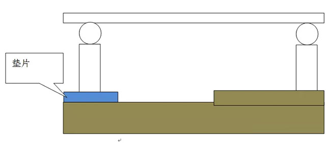 圖3所示表示基礎和臺面存在不平,則可通過在傳感器底部墊鐵板的方式來解決這個問題。那么又如何墊呢?
