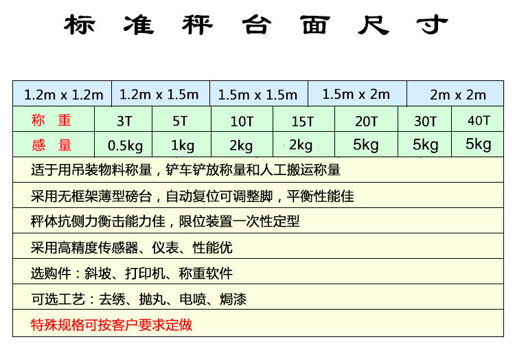 碳鋼秤臺的表面經(jīng)噴砂、丙烯酸漆處理。
